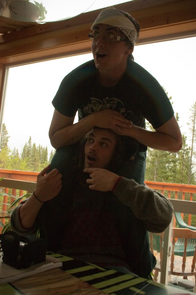 Il s'en est passer des choses depuis, j'ai réussi a trouver un boulôt dans une cuisine. J'ai commencé comme laveur de vaiselle et 2 semaines plus tard j'était rendu cook, c'est a croire que c'est ma destinée. Rencontres avec des gens hors du commun, beaucoup de gens m'ont appris ce que c'est de vivre sa vie pleinement. Il va falloir les immiter. Peu de temps après J-S et Phil sont venus nous rejoindre et on habiter chez moi pendant un mois, Phil s'occupait de faire des commissions pour un de mes amis tandis que j'ai fait entrer J-S comme cook au resto ou je travailles. Des soirées merveilleuses s'en sont suivies, comme par exemple la fois ou l'on a mis le sofa sur le toit. C'était génial. Bref, vers la fin aout on se dit tous qu'on doit partir au BC alors on le fait, direction Keremeos! Cueuillir des pommes semble interessant. Après 2 jours de routes et camping et niaisage nous arrivons, la route etait merveilleuse. Keremeos dans la vallée d'okanagan. Désert, rencontres, feu de 15 pieds de haut. Je retourne en Alberta, les BC c'est pas pour moi pis de toute facon j'ai un autre rêve. Aller faire du snow dans les rocheuses. Pour J-S par contre, c'est une autre histoire, il reste la bas et se dirige vers Vancouver dans pas trop long.
