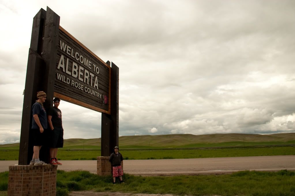 Ça y est, nous sommes en Alberta. Le soleil a décidé de se montrer, les vaches sont sorties et mangent l’herbe, Phil et J-S sont torse nu dans la voiture et c’est à mon tour d’être en arrière. Canmore n’est plus qu’à trois heures d’ici. Nous traversons Calgary, drôle de ville quand même, mais c’est joli. On monte une côte et puis BOOM! Les montagnes apparaissent, dommage qu’il y ait autant de nuages, car la vue aurait été splendide.