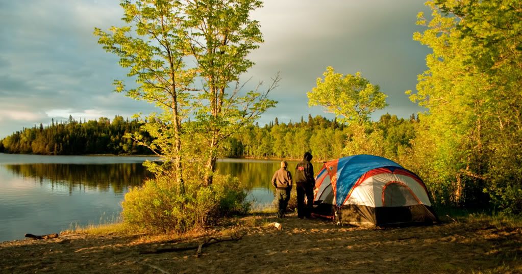 Quelques heures de route plus tard, nous arrivons enfin près de la frontière ontarienne. « On dors pas en Ontario, Man. » On a tous pensé à la même chose. On se trouve un lac près de la frontière et on s’y campe. Deux minutes de chemins de terre plus tard, on trouve l’endroit rêvé. Un débarcadère de bateaux en face du lac Duparquet dans la ville portant le même nom. Peut-être est-ce le lac qui porte le nom de la ville, mais de toute façon ce qui importe c’est que nous avons dormis ailleurs qu’en Ontario. On se fait un petit feu de fortune, Phil s’occupe d’aller chercher du bois mort dans la forêt, moi et J-S on est sur le cas de la tente. On a eu le temps de relaxer un peu pour admirer le coucher du soleil, la vue était splendide et l’endroit ne pouvait être mieux choisi. Une fois le soleil couché on se prépare une bouffe sur le feu, c’est génial; « C’est officiel les boys. » Nous dit J-S, ayant des étincelles dans les yeux, et je vous jure que ce n’est pas que le reflet du feu qui réfléchis dans sa rétine. On finit le Jagermeister, on prend trois bières et on se couche.